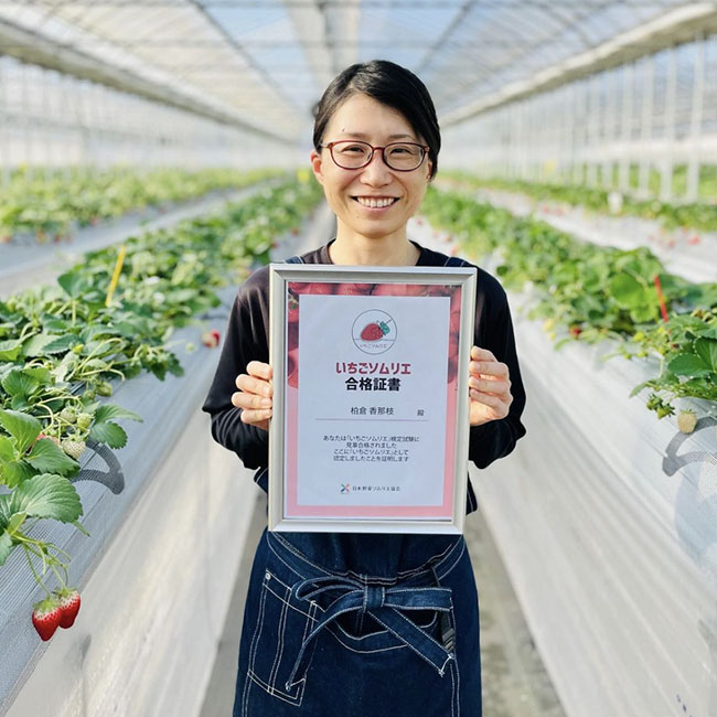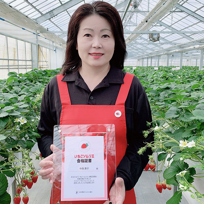 「いちごソムリエ」を取得したのは、美味しいいちごのことを知っていただく為に、いちごの知識を身につけたかったからです。